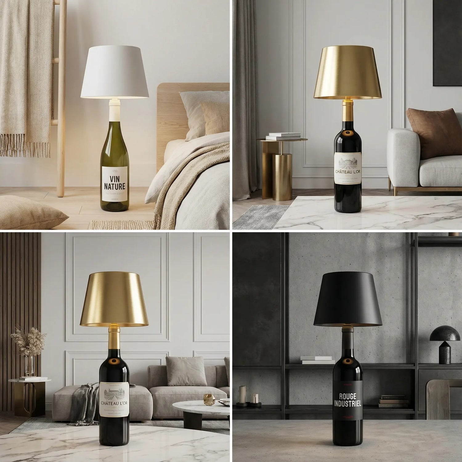 Posée sur une bouteille, la lampe change tout de suite l’atmosphère. Lumière douce, rendu très élégant.
